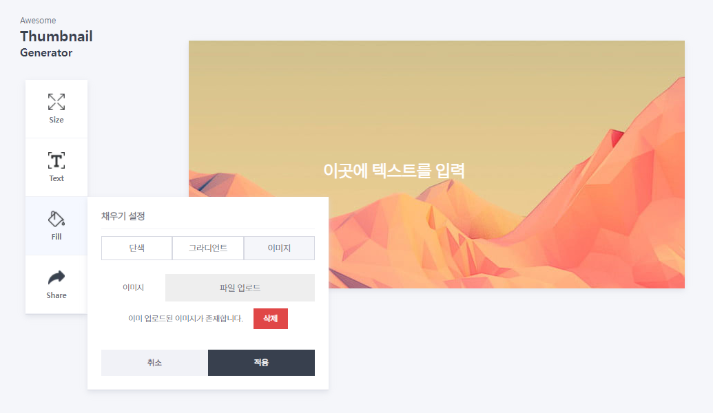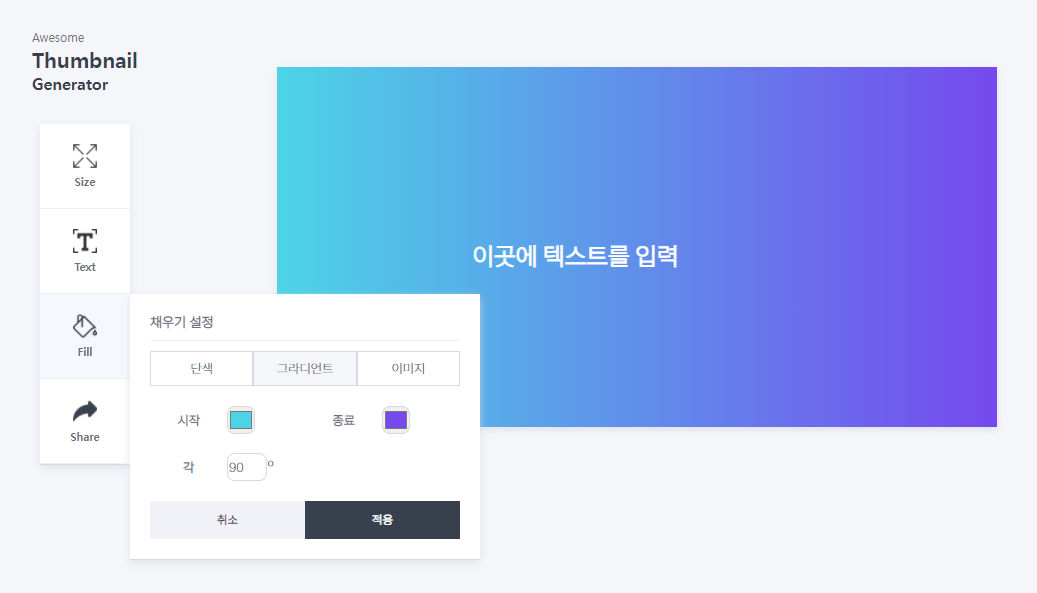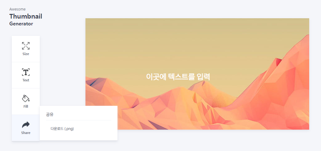 블로그 등 썸네일이 필요할 때 웹에서 간단하게 썸네일을 만들 수 있도록 도와주는 웹서비스입니다.
