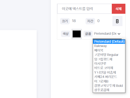 크기 / 자간 / 굵기 / 색상 / 글꼴을 설정할 수 있습니다